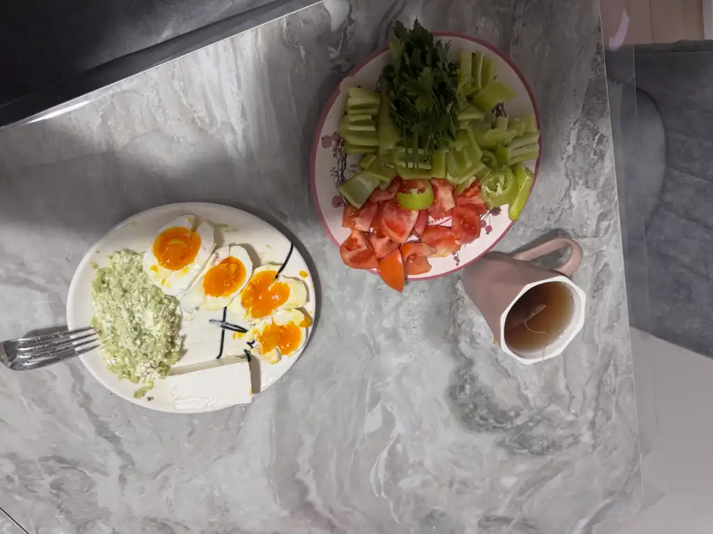 Eve gelip görseldeki menüyü yaptım kendime ekmeksiz