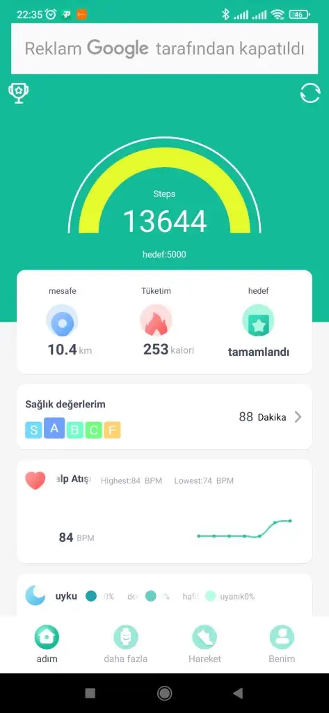 4 Ekim, Çarşamba günü için adımlarımı 5036'ya tamamlayabildim.