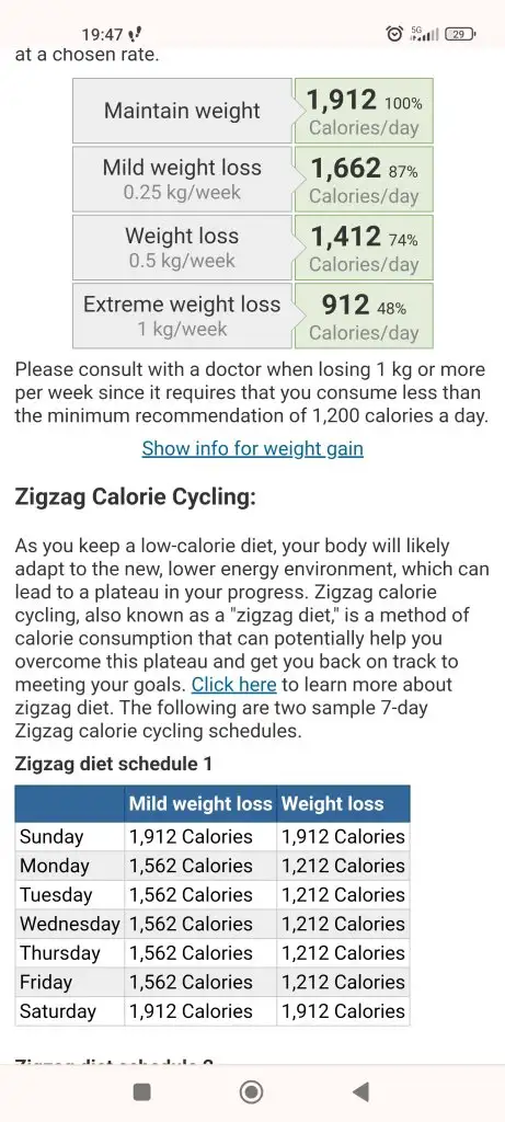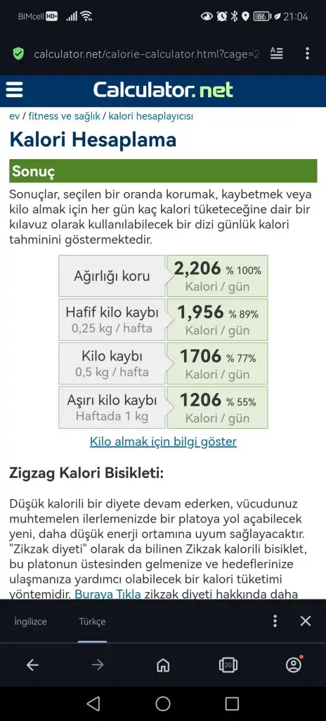 haftada 4-5 gün egzersiz ile bana da böyle dedi ben haftada -250 -500 kilo kaybı olacak şekilde besleniyorum aşağı yukarı bu durumda biraz daha azaltip hızlandirirsam iyi olacakCalorie Calculator