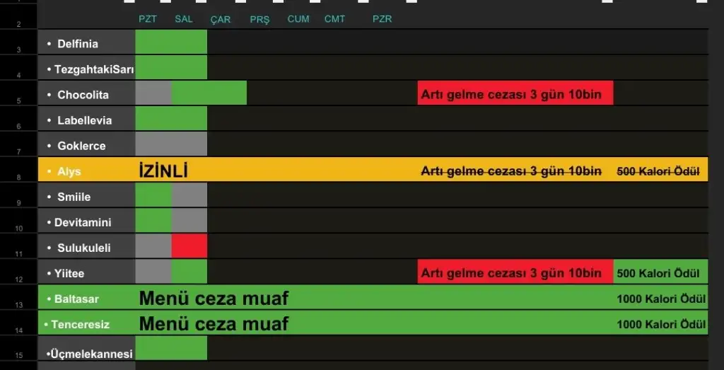 Ben dün menü yazdım. Ondan önceki gün ne yediğimi haturlamıyorum. Ama diyet beslendiğime eminim. Napiyim bu konuyu.Menü ve ceza durumları bu şekildr kızlar