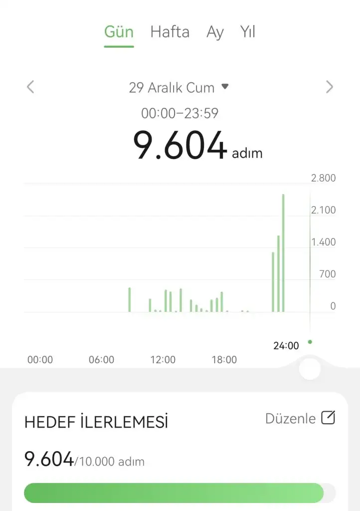 5 bin adım ama alışveriş falan yılbaşı hazırlık, kv gittik ayrıca yürüyüş yapamadım.