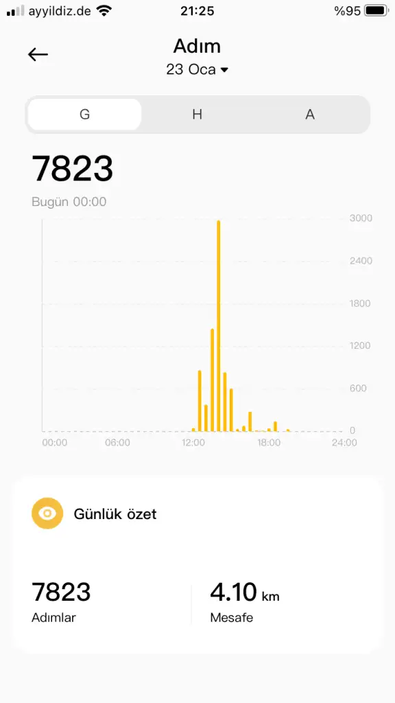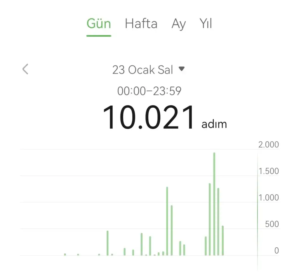 Adımlarım gün sonuna kadar 5000'e tamamlanır.