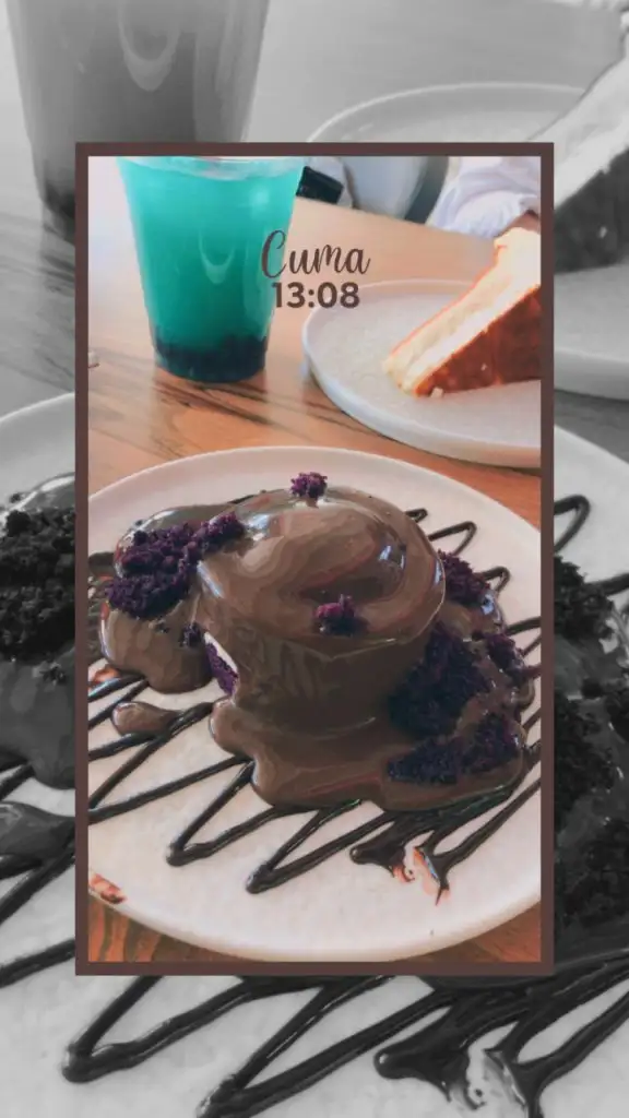Yine adını bilmediğim bir pasta paylaşmış, lüküs lüküs cafelerde