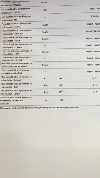 Vala degerler bu pek anlamam ben bıraz yuksek bol su ıcıyorum sımdı maydonz suyu ıcıcem oda atıyoms en kotu Pazartesi dr a gıdınce bana ılac verır dmırle ve enfeksıyon ıle alakalı dıye dusunuyorum dıger drumu telefonla aradım oda kum yada tas dokuyo olabılırsın dedı sacmaladı kurtaj oldum sonucta enfeksıyon kapmam normal degılmıcanım çokmu enfeksiyon, soğan kürünü denedin mi hiç cidden faydalı baya kişide yapıyor d vitaminiyle demiri toparlarsın baya kanaman oldu normal aslında dikkat et artık
