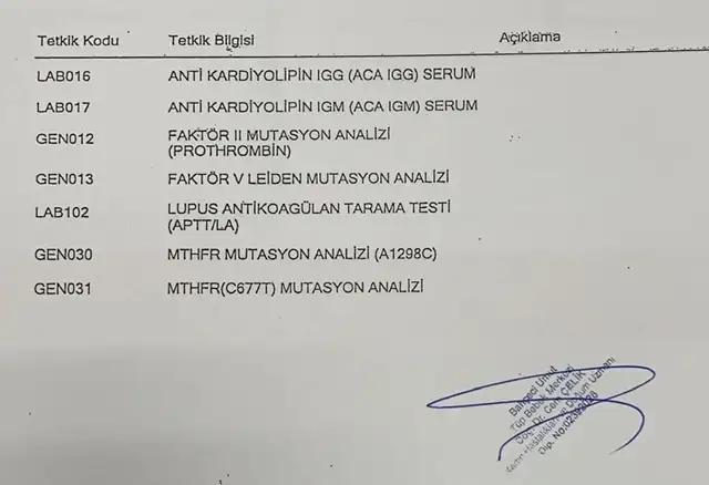 Merhaba bu testleri istediler. Ancak dün biraz internette araştırma yaptım bunlar haricinde de bazı testler var iyice öğrenip onlarıda doktoruma sorucam.Neler istediklerini özelden yazabilir misiniz, neyi araştıracaklar merak ediyorum