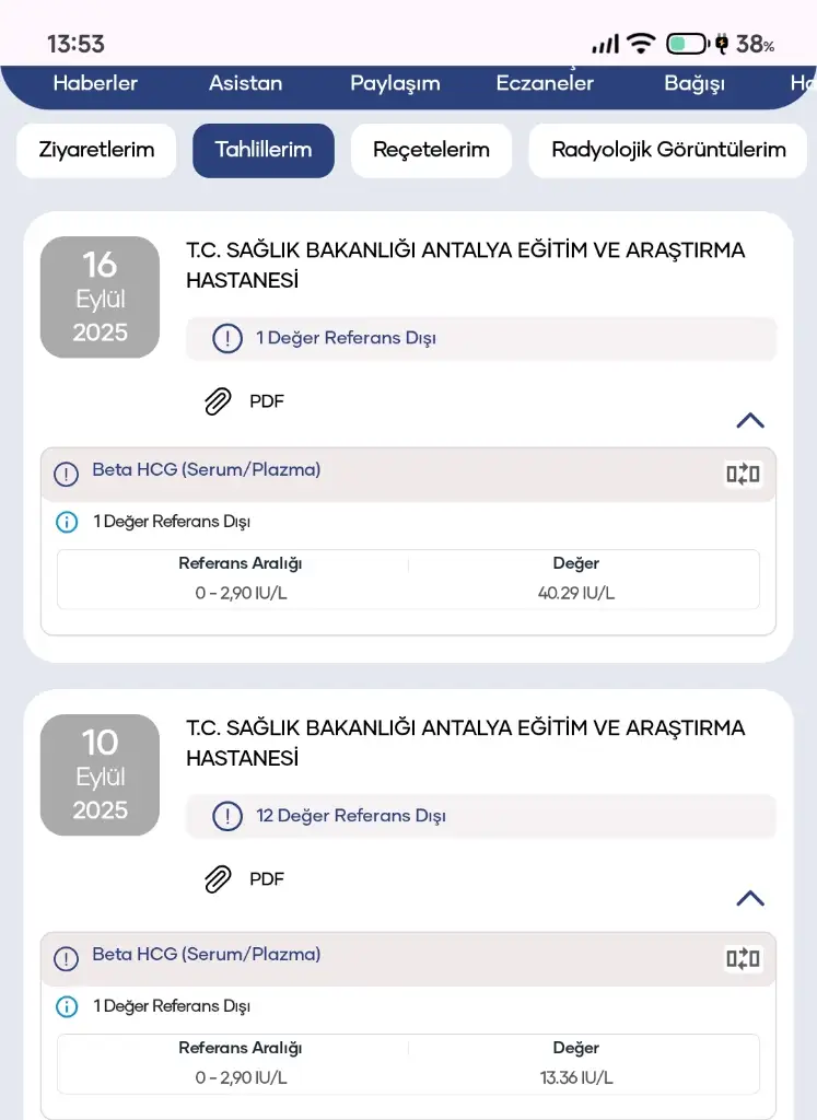 Bu değerinin iki günde bir iki kat artması beklenir gecikmeniz var mı ilk testi regl olmadan önce mi verdiniz