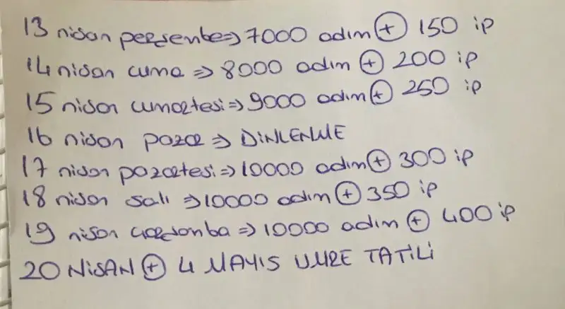 Merhaba Can'ım senin günlüğüne bakıyorum maşallah diyorum umarım ben de sizin gibi olabilirim bugün spor olarak yürüyüş ve ip atlama yaptım
