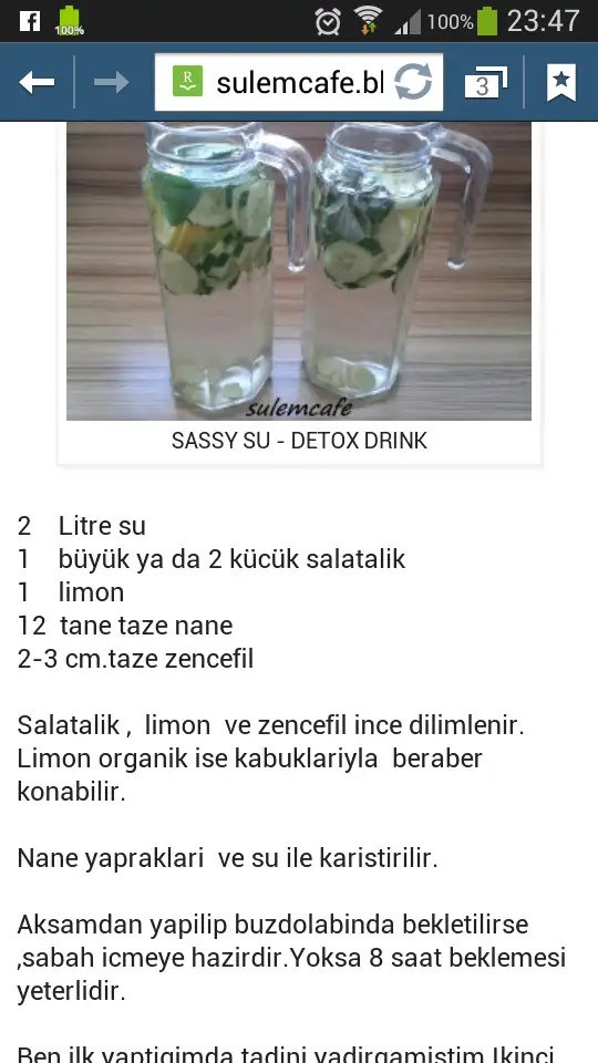 Ben az önce hazirladim bakalim tadi nasil bir faydasi varmi.. hergün aksamdan 2 l hazirlayip. Tüketilcekmis. Düz bir karina sahip olmaniza sagliyormus. Benjm gibi göbekli birisindede fayda göstercekmi bakalim. Dün gece uyku tutmayinca arastirdim biraz. Her sitede farkli birseyler demis. Kimi en fazla 5 gün yap demis kimi istedigin sürede demis. Bir sitede okudum, 2 ayda 10kg vermis.. bakalim bende nasil bir etki göstercek. 5 günün sonunda kendimce durum degerlendirmesi yapicam. Yarin biraz daha aristirayim..