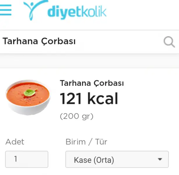 ben de aynı yerden? ama orta boy kaseyi seçtim ben. aaa yeniden baktım da yanlış bakmışım:) doğru diyosun tüh keşke tarhana yapsaydım.Canim sen nerden baktin kalorisine? Diyetkolikten baktim simdi, sadece 30 kalori fark var. Mercimek bir kase 91 diyor, tarhana 121.