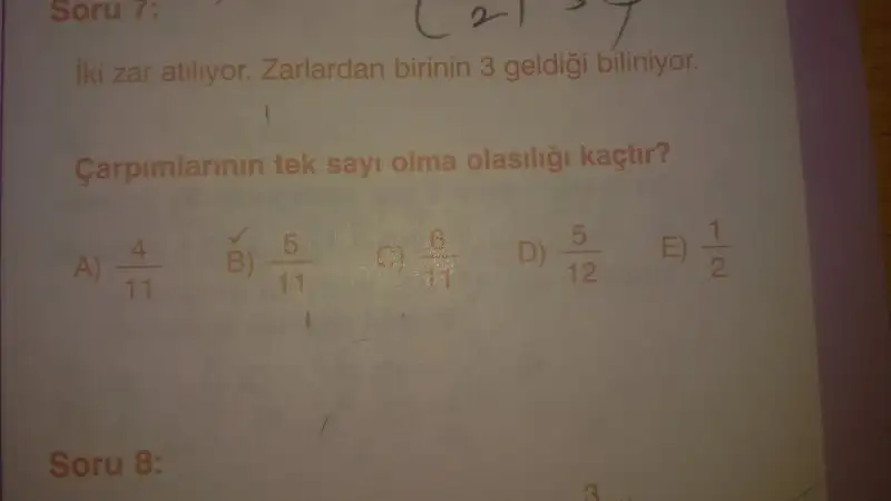 Hmm bi daha bakaym o zamannnÜzerinde tık vardı cevabın o yüzden yazmamıştim. Cevap 5/11 imismuzlupasta