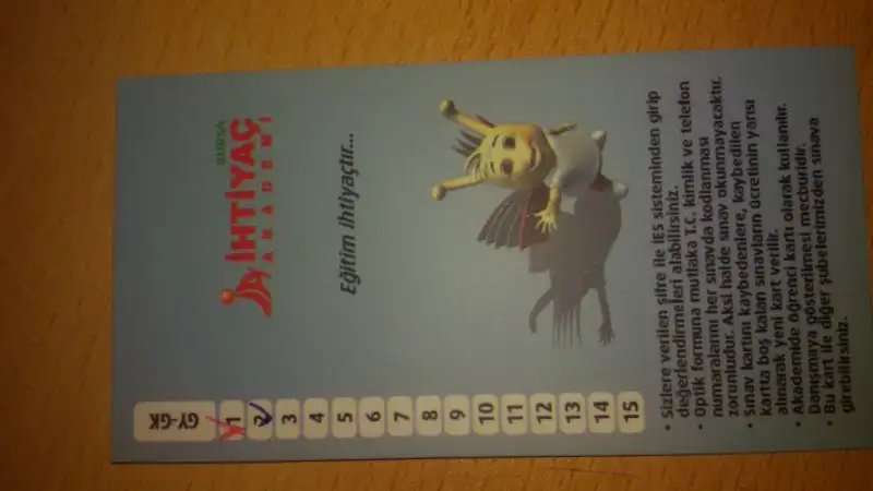 68 ve 76 ilk sınavlara göre çok iyiBöyle kart var, tik koyuyorlar sınav anında. Ben toplu kayıt yaptirmistim sınava. O yüzden var bende de.