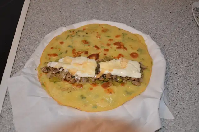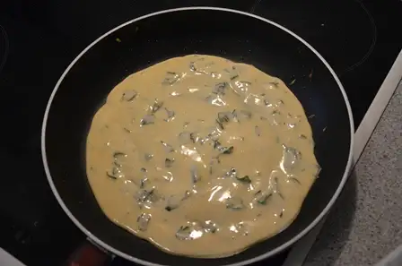 Yapılışı: Öncelikle 3 yumurtayı güzelce çırpalım, arkasından su, süt ve yoğurdumuzu ekleyip çırpmaya devam edelim. İyice çırptıktan sonra ince dilimlediğimiz maydanoz ve yeşil soğanlarımızı ekleyelim. Tuz ve karabiberini kattıktan sonra ( dilerseniz bir tutam pul biber de katabilirsiniz.) alabildiğince un döküp iyice çırpmaya devam ediyoruz. Un miktarı malzemeler fotoğrafındakinden az fazla, kulak memesi kıvamından az daha akışkan bir kıvam. Kepçe ile tavaya döktüğümüzde kendince yayılabilecek kıvamda olmalı. Tavaya çok az yap döküp, bir kepçe bu hamurdan tavaya döküyoruz, biraz kalın bir kıvamsa kepçe yardımı ile tüm tavaya yayıyoruz. Altlı üstlü iki dakika kızartıp çeviriyor, sonra başka bir tabağa alıyoruz.