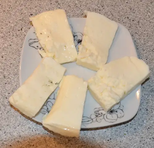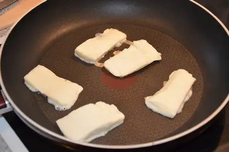 Bu aşamadan sonra kaygananın içerisine bir kısım mantarlı karışımı, uzununa, bir kaşık yardımı ile döktükten sonra üzerine tavada erittiğimiz hellim peynirleri ekliyoruz.
