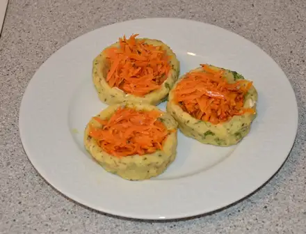Daha sonra diriliği gitmiş havuçlarımızı yağı ile birlikte yuvalara dolduruyoruz. Üzerine bir kaşık süzme yoğurt döktükten sonra, bir tavada yaktığımız bir tutam pul biber ve naneye salça ekliyoruz, belki çok az da su ekleyerek salçayı kavurduktan sonra, en tepeye bu karışımı ekliyoruz.