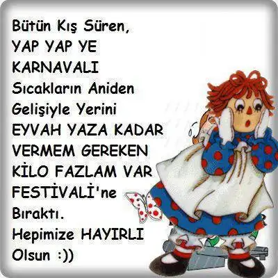 Sersumcum sözüm söz valla artik kurtulcam su kilolardan. Bi ara bende kilo hikayemi anlatcam kizlar eminim cok hirsli oldugumu goreceksiniz hikayemi dinleyince cok yakinda...