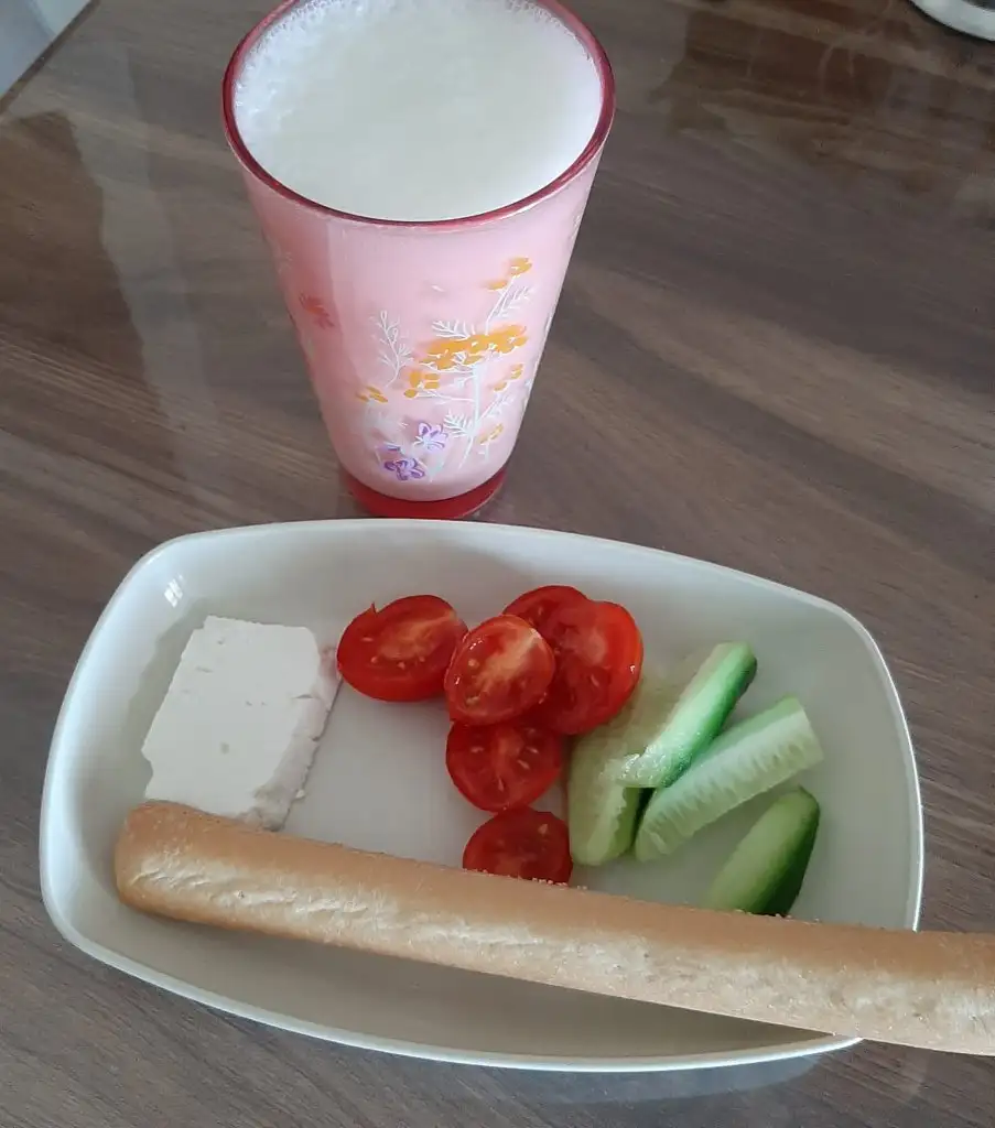 Kahvaltı 1 yumurtalı omlet 1 poğaça Ara Kahve 1 kuru incir Sütlü kahve 1 dilim kek Akşam 1/3 yufka ekmek ile tantuni 1 bardak ayran Turşu