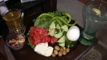 biraz peynir, biraz zeytin, yerfıstığı ,çay