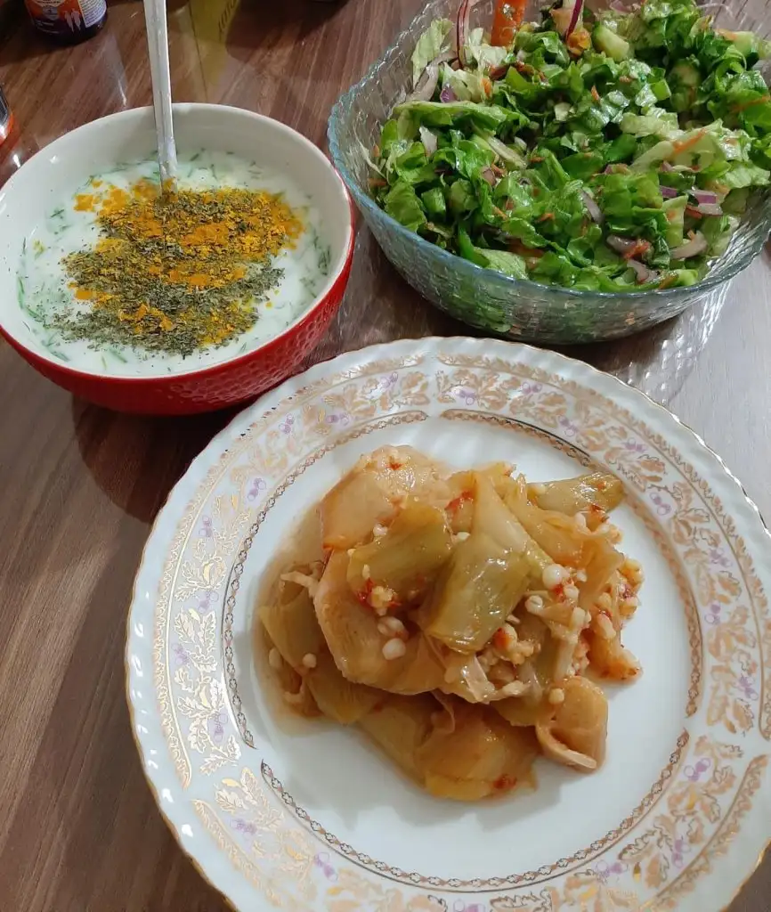 Akşam 1 kase yoğurt çorbası 2 kaşık yesil fasulye salata ve yoğurt