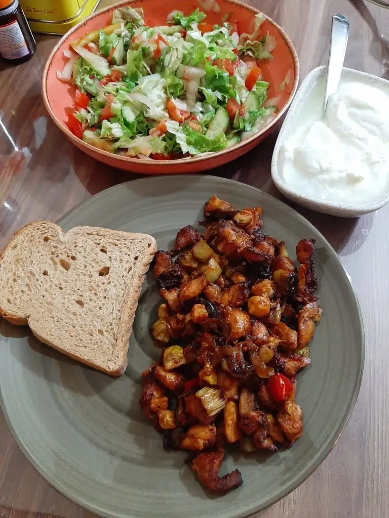 Arada kahve içtim ama yine acıktım dün öğle menüsünün aynını yiyeceğim