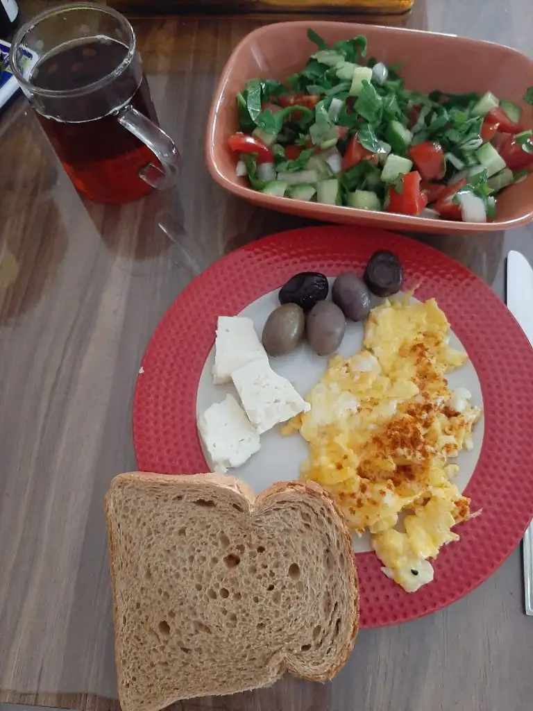 Sabah haşlanmış yumurta 1dilim tb ekmeği 1dilim beyaz peynir zeytin