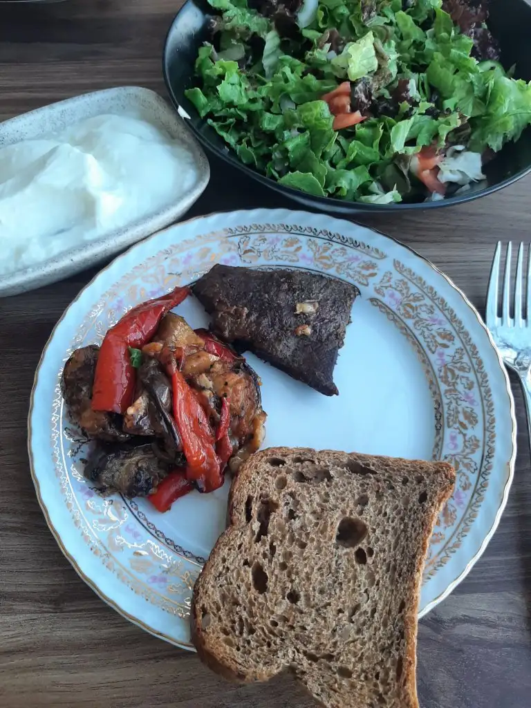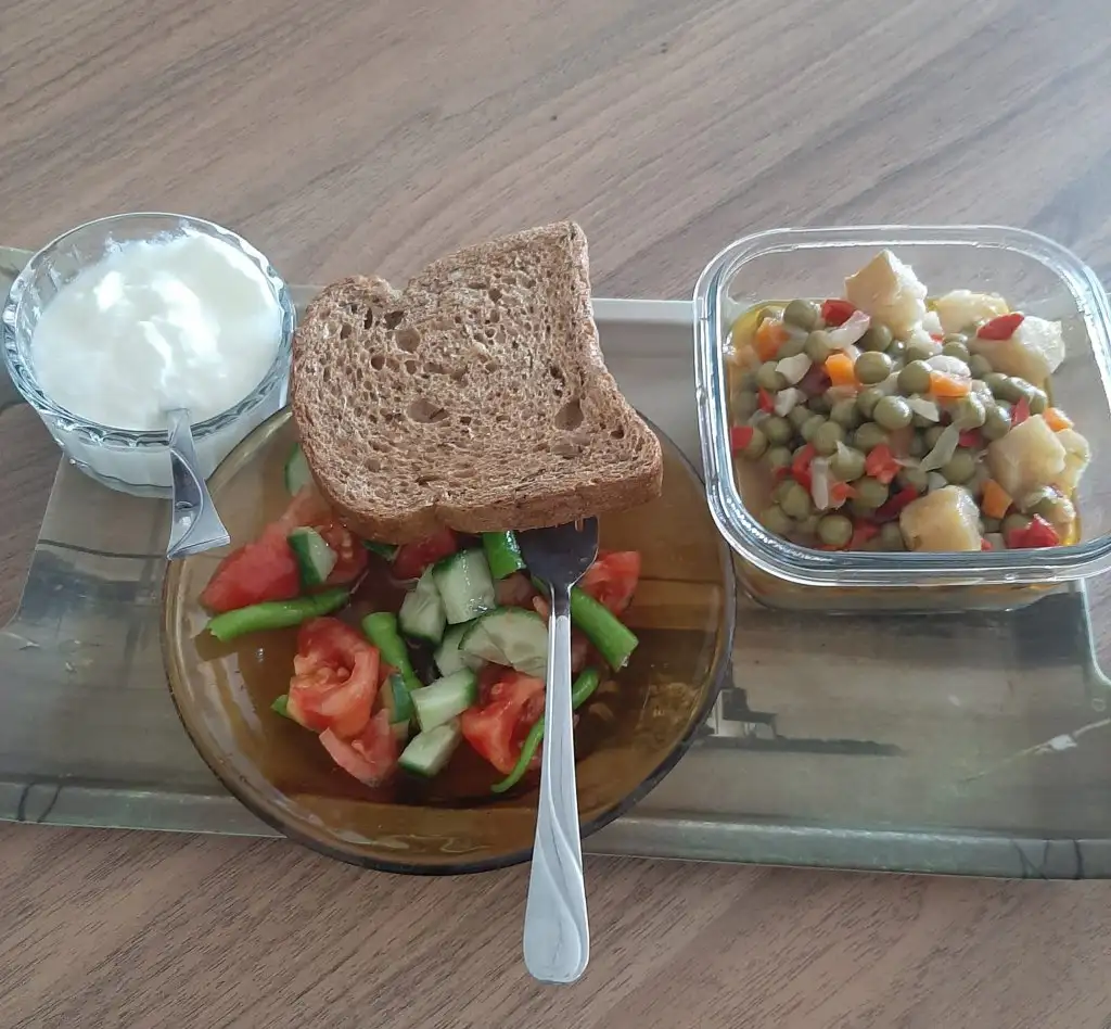 ya sebze yemeği , ya salata arkasından sütlü kahve falan.