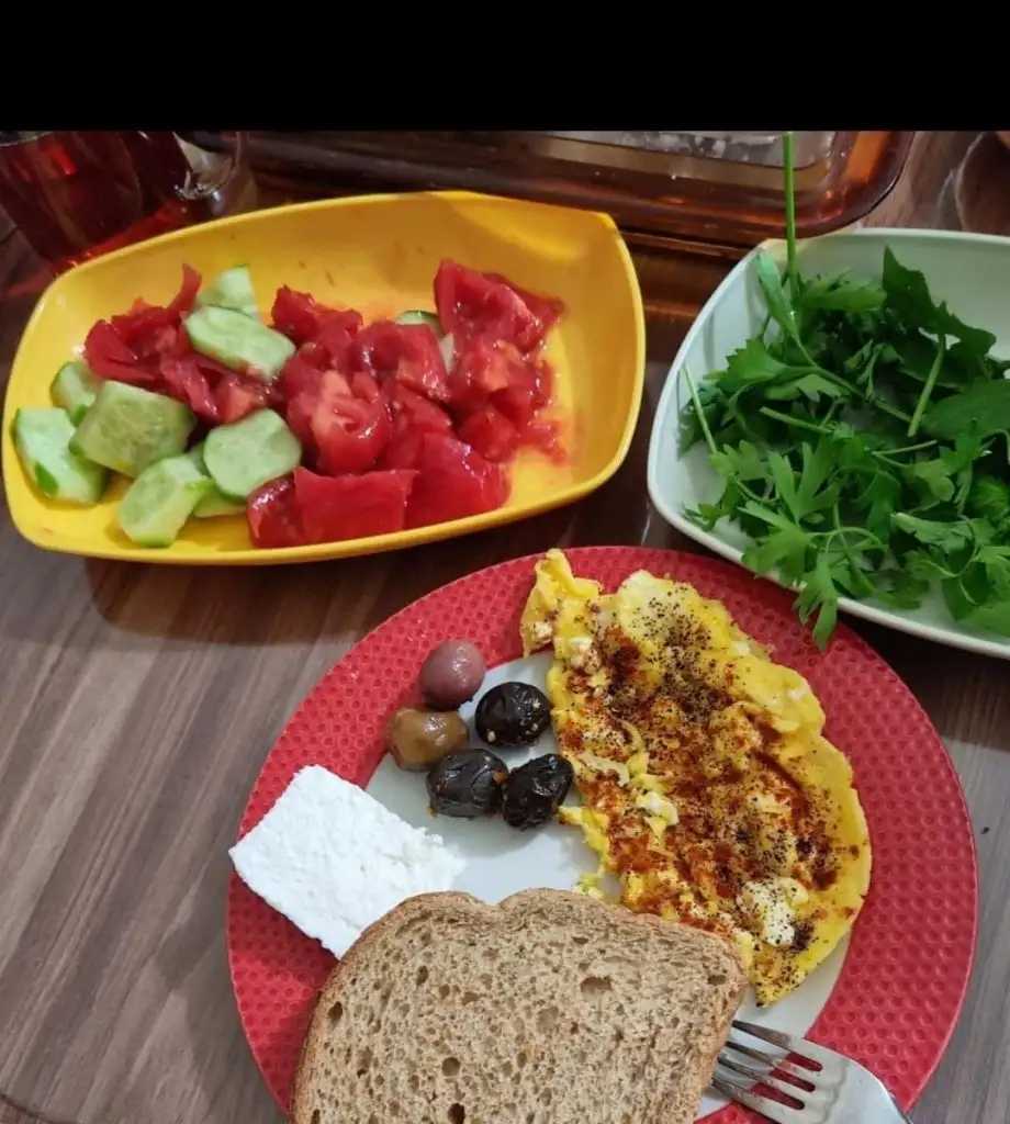 Çarşamba sabah 2 yumurta salata 1 minik tost zeytin
