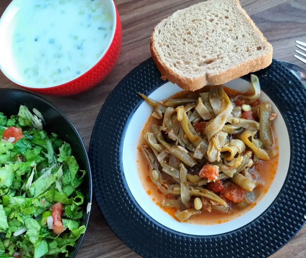 Akşam henüz yemedim bugün geçe kaldım taze fasülye salata tavuk