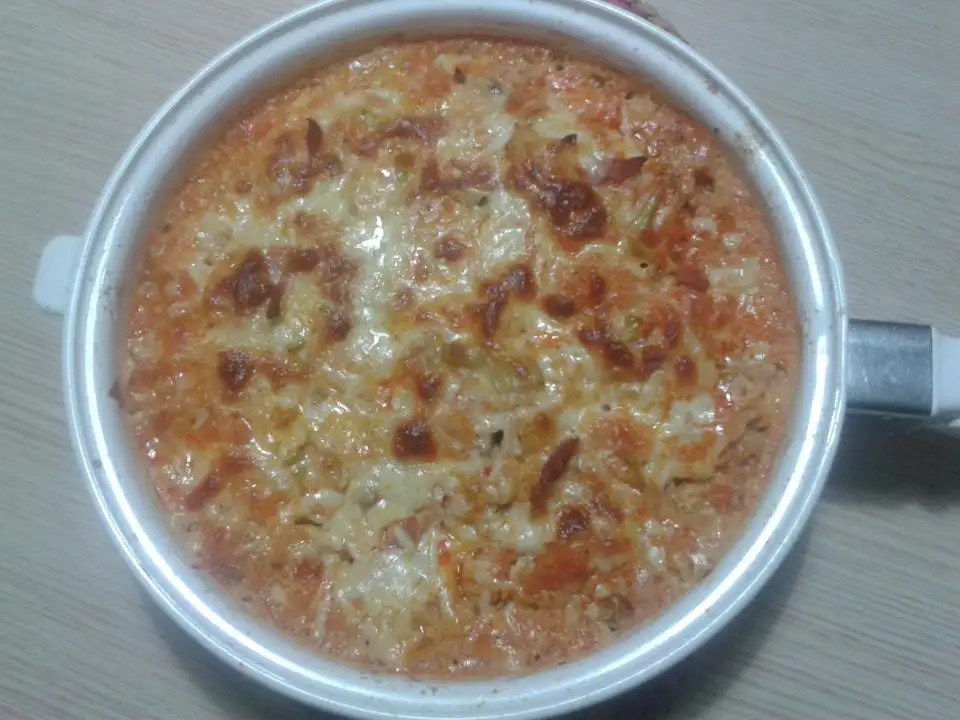 fırında kıymalı yımırtalı karnıbahar, üstünde kaşar(daha önce yapmıştım buzluktan 1 parçasını çıkardım)