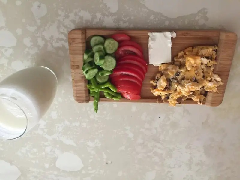 Annem kahvaltı yapıyordu onunla azıcık omlet yedim o kadar