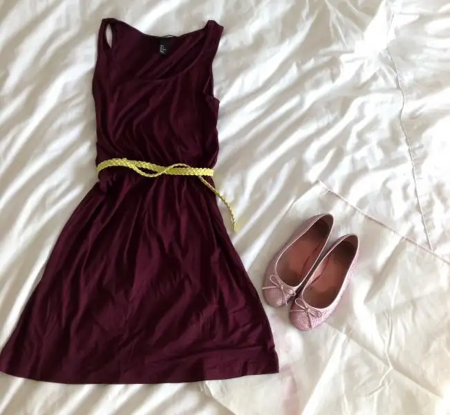5. Eki Görüntüle 1165195 H&M small beden penye bordo elbise 10tl kemer 5tl zara pembe simli babet 36 5tl babet cok rahattır fakat içinde görüldüğü gibi lekeler var..