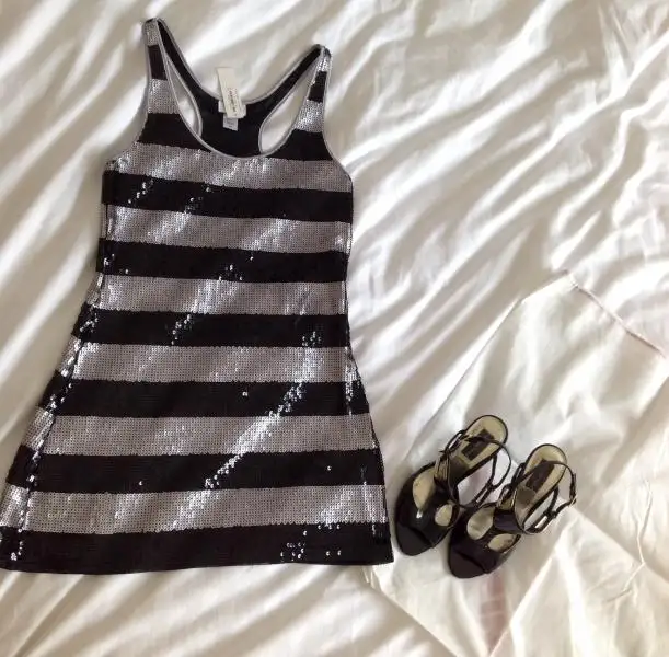 6. Eki Görüntüle 1165205 La Senza gümüş şiyah sırf pullu etiketi üstünde small beden gece elbisesi 20 tl home storedan aldıgım italyan marka siyah rugan topuklu ayakkabı 36 numara 15tl