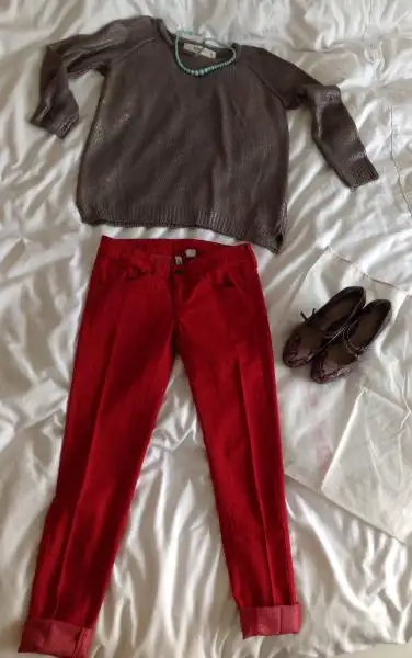 10. Eki Görüntüle 1165211 zara M beden kırmızı kazak 10tl saks mavisi ispanyol pantolon 34 beden 10tl nine west 36 yılan deri 20tl
