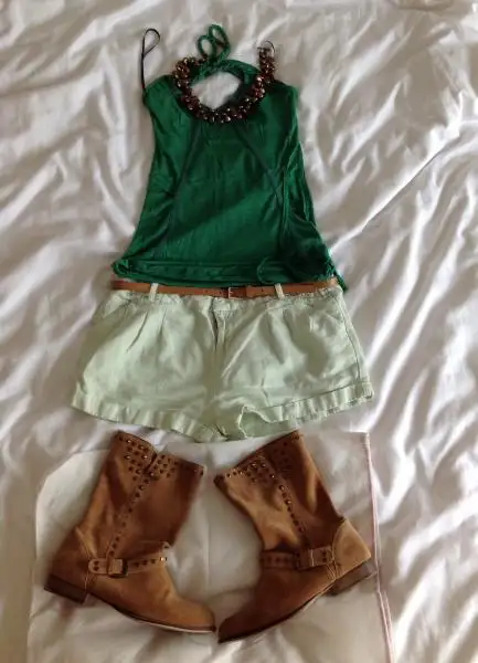 22. Eki Görüntüle 1165236 berhska 36 yeşil sort kemer dahil 10tl Warehouse 34 yeşil bluz 10tl kolye 5tl bershka suet 38 bot 40tl kombin 60tl