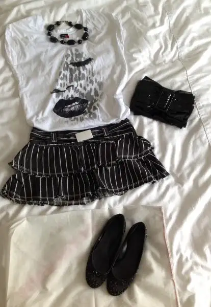 21. Eki Görüntüle 1165235 berhska 34 beyaz mini etek 5tl Y-London small kot yelek 15tl pembe pullu 36 babet 5tl
