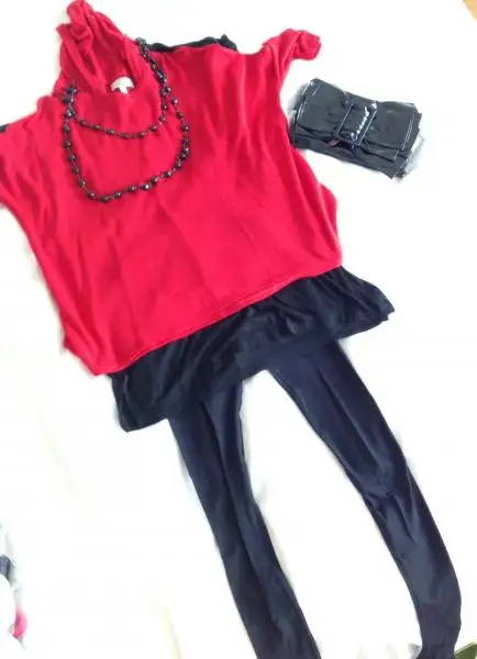 39. Eki Görüntüle 1165285 zara small kırmızı üst 10tl siyah xs tayt 5 tl mango siyah uzun tişört 5 tl kolye 5 tl canta 10tl kombin 30tl