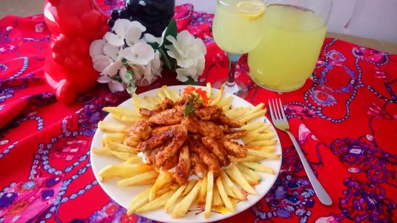 Kızarmış patates ve lokum gibi pişmiş etin muhteşem uyumu