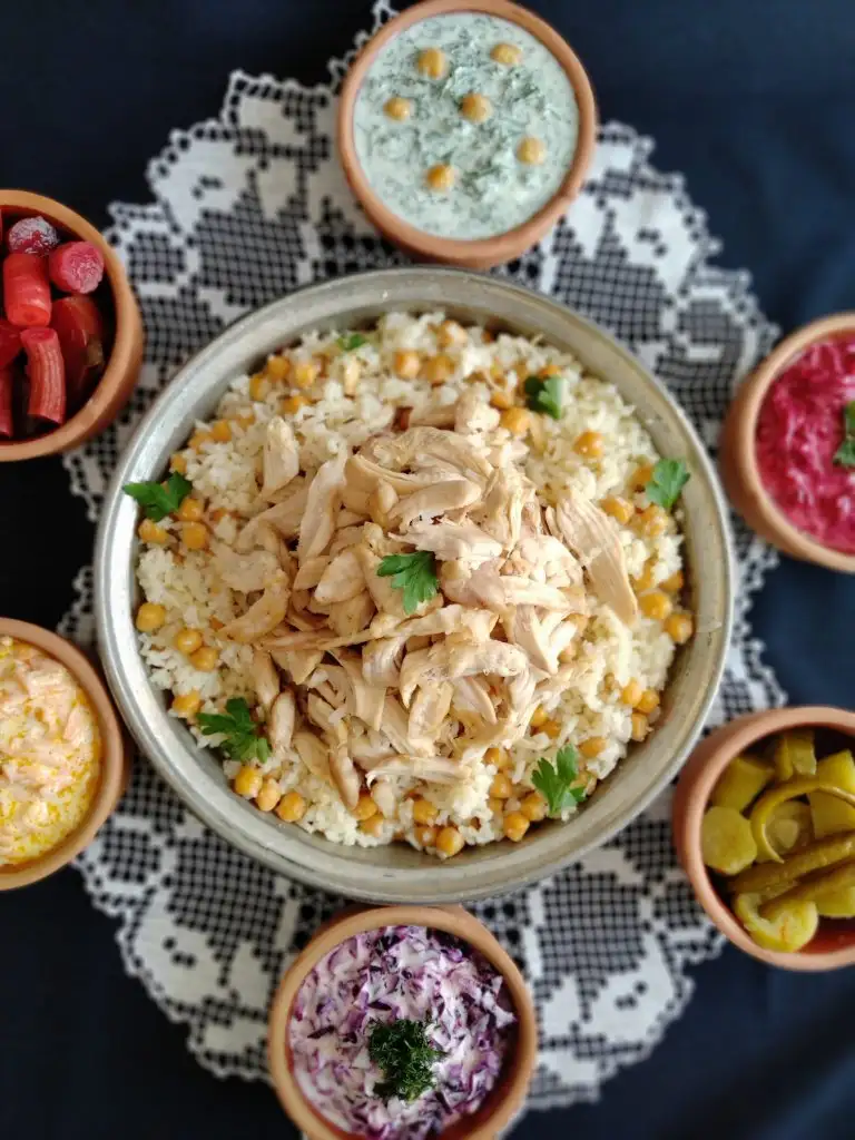 Herkesin çok sevdiği olmazsa olmaz tavuklu,nohutlu pirinç pilavımız menünüze çok yakışacak...