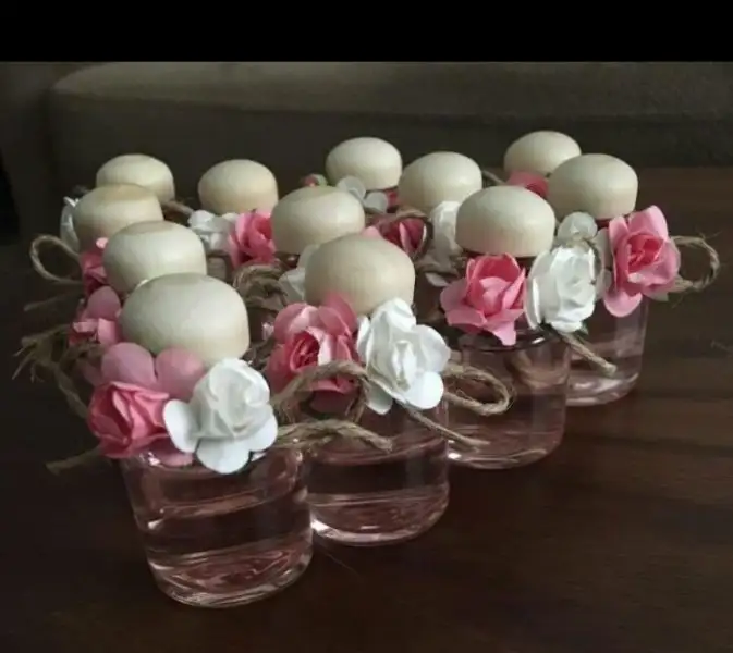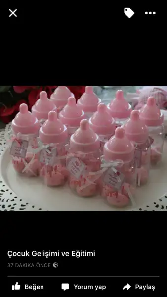 Ben de oğluşuma yıldız şişe alıp üstünü süslemiştim. Aslında kolonya koyacaktım ama tıpaları akıtınca badem şekeri koydum :)