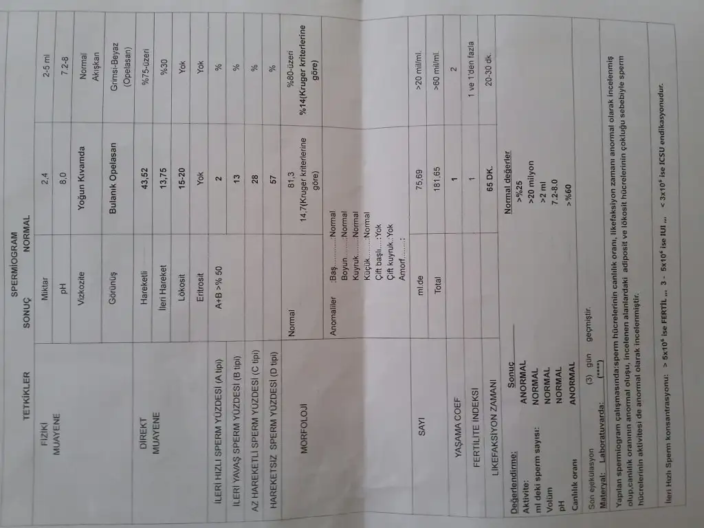 Sperm sonucu da güzel cikacak Allahin izniyle.