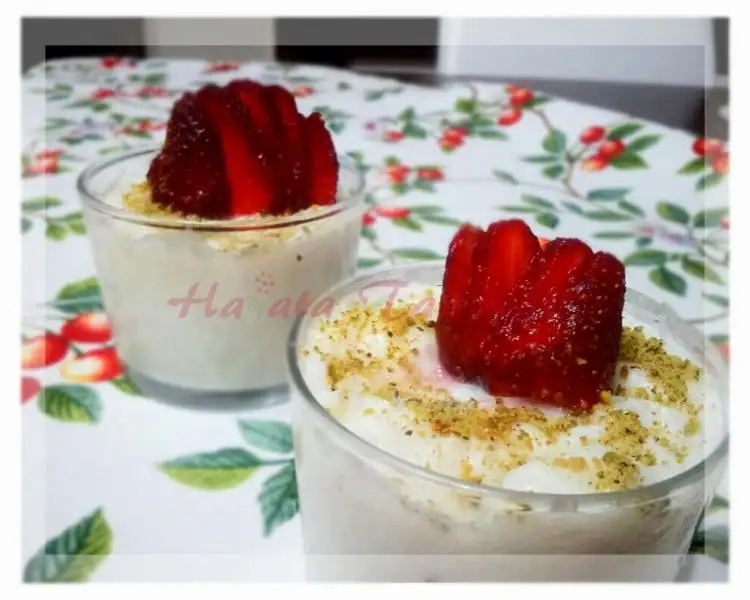 - Krem şanti, hindistancevizi sütü ve yarım su bardağı sütü çırpın. Buzdolabında 30 dakika dinlendirin. Kalan süt, un, nişasta, tozşeker ve vanilyayı tencereye alıp, kısık ateşte muhallebi kıvamı alana dek karıştırın.