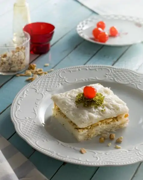 - Daha sonra üzerine dövülmüş ceviz, badem, fıstık, fındık ve arzuya göre gül suyu ilavesiyle servis yapılır.