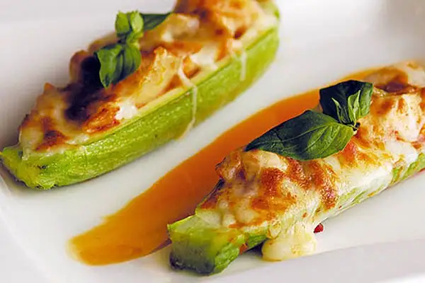 - Kabakları uzunlamasına ikiye bölüp içlerini çıkarın. Daha sonra tuzlu suda hafifçe yumuşayana kadar haşlayın. Süzüp bir fırın tepsisine alın.