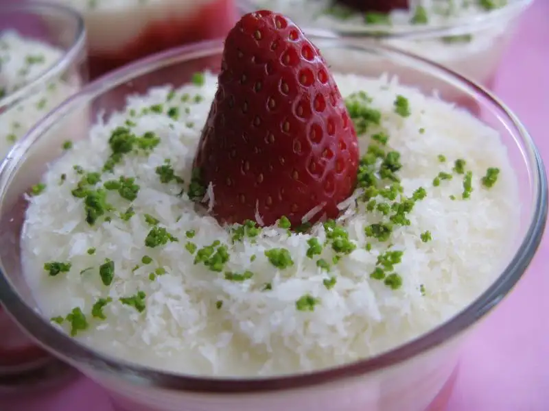 - Üzerine muhallebiyi paylaştırın. Kalan hindistancevizini serpiştirip servis yapın.