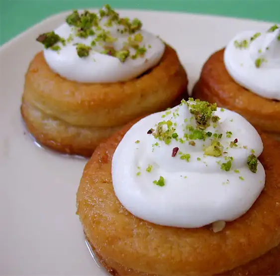 Ayçiçeği yağını iyice ısıtın. Hazırladığınız hamurları bu yağda kızartıp soğuyan şerbete atın. 5-6 dakika sonra şerbetin içinden alıp toz Antep fıstığı ile süsleyip servis yapın.