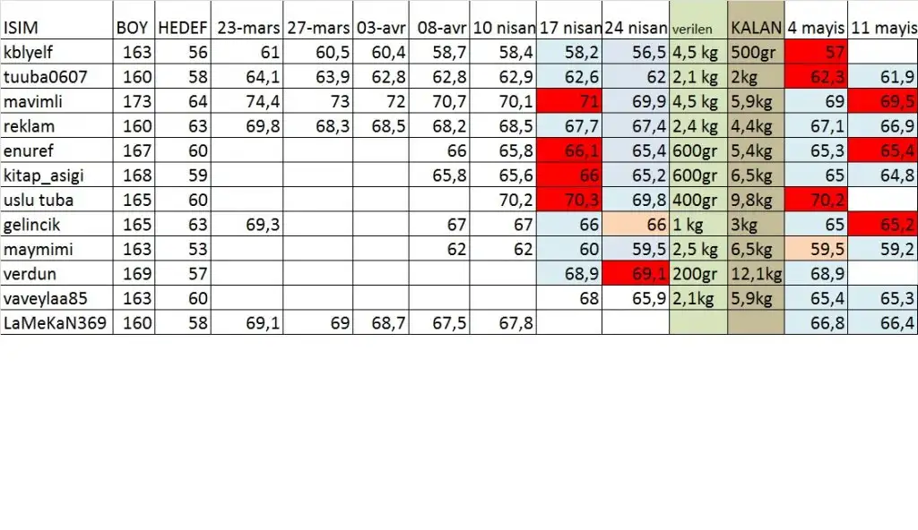 boyumuz disinda diger rakamlarimiz nerdeyse ayni :KK39: hedef 58 suandaki kilom 61.7 cumalari aksatmadan yapabilirsen bildirim yazayim seni de tabloya