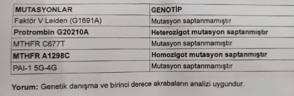Başka bi yerde bı aynı genler mutasyonuna sahip bı arkadasin doğumdan sonra beynine pıhtı atmış riskli dedi bu genler icin o yüzden gebeliki bile düşünmemeye karar verdimPıhtılaşma var diye yorumluyor doktorlar bu mutasyonları kan sulandırıcı iğne ve hap verirler büyük ihtimal gebelik boyunca kullanman için