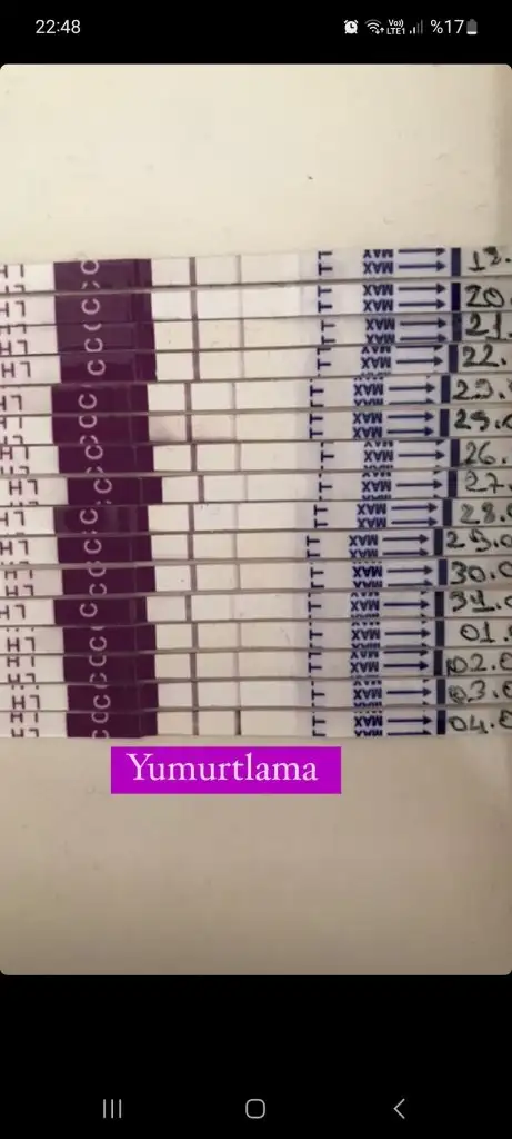 🥹 canım bakabilirmisin az önce yaptım 7-8 dk önce silik çıktı acaba test mi bozuk yada akşam saati diye mi böyle çıktı sence? Öğlen yaptığımda daha koyuydu gece de çok ağrım olmuştu yumurtlamadan emin oldum takvimde aynını gösteriyor tarih 🥹 çatlamıştır diye Düşündüm ama bilemedim ilk yaptığım test koyudan bi tık silikti