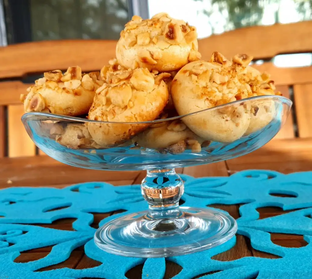 - Hamurdan cevizden biraz küçük parçalar alınır. Avuç içerisinde yuvarlanıp biraz aralıklı olacak şekilde fırın tepsisine dizilir.