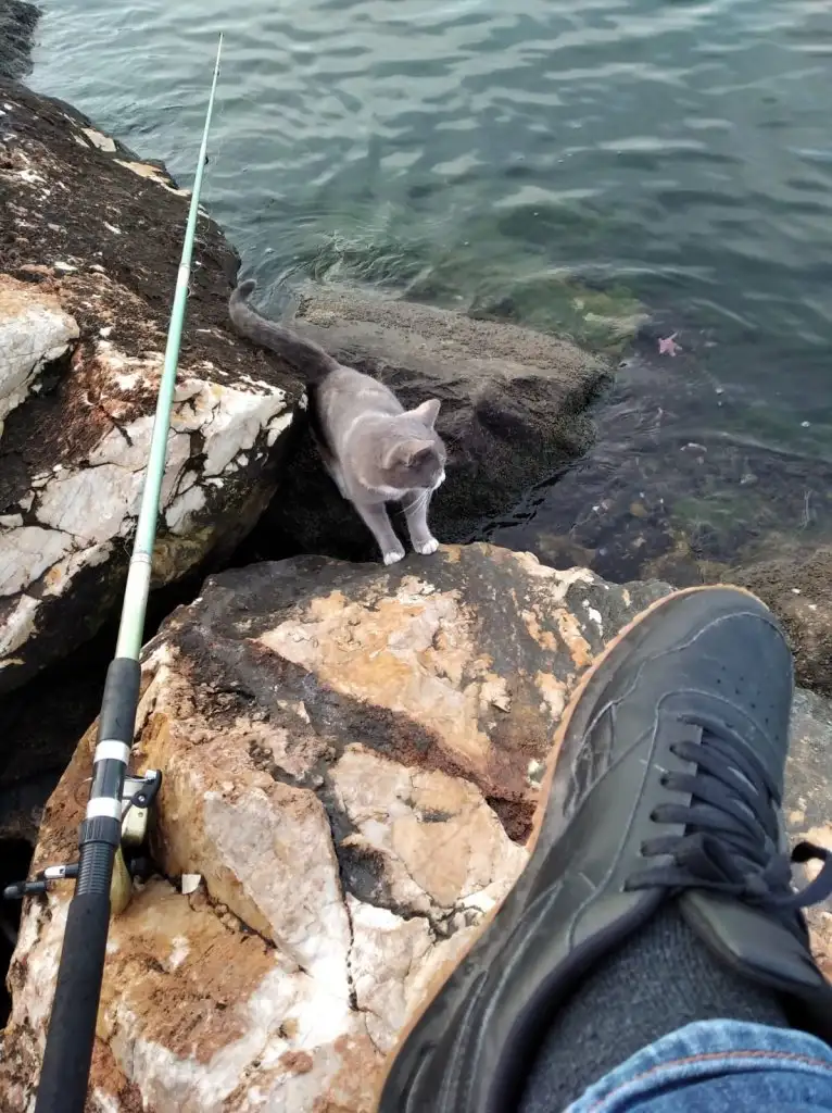 Kedi de ne asil ya. Ama ortakçı anlaşılan ondan yanaşıyor. Tuttuğu balıkları yemese bariDoymuyor taşın tepesinde oturmaktançok sever kediyi ya zaten yanaşmış bir pisicik
