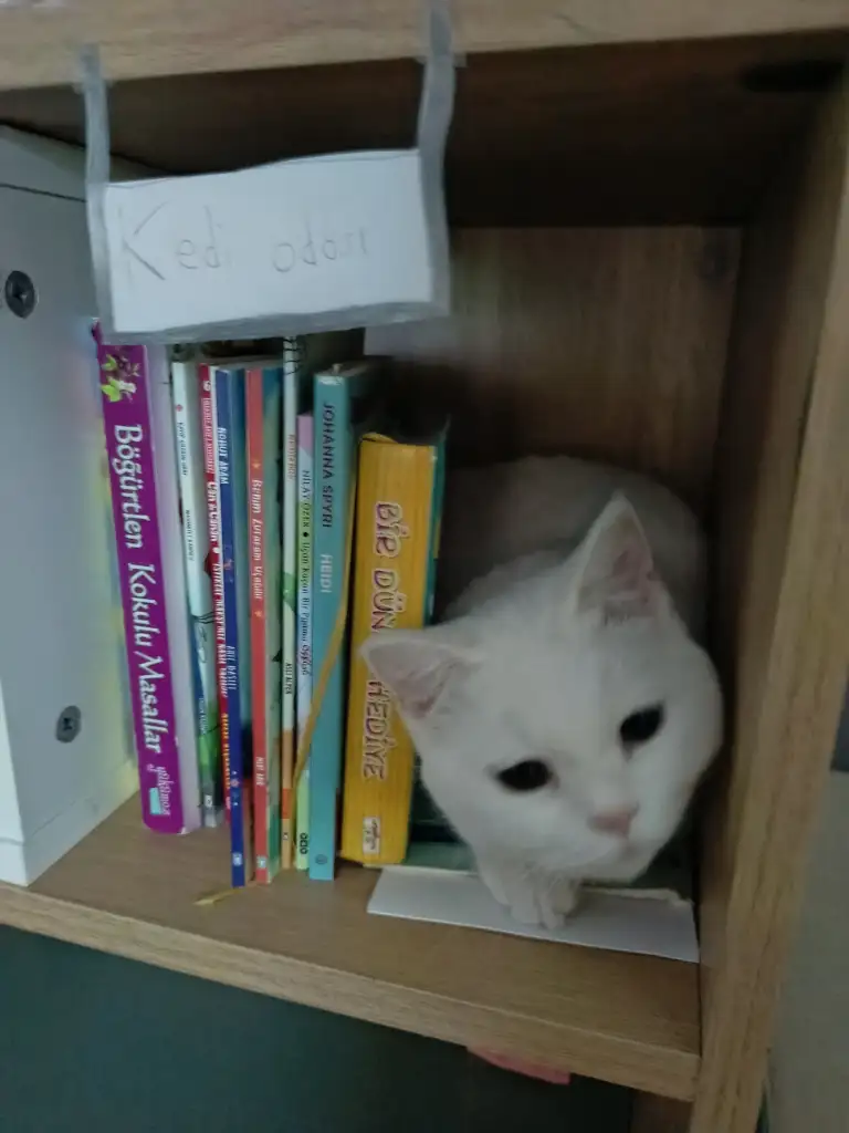 Yaa benimki de ölsen ben burdayım demezDün gece kediyi aradım durdum yok girdiği yerlere baktım yok kızım da kitaplığa kedi odası diye yapmıştı ama buraya hiç girdiği yoktu elimde telefonun flaşı koltuk altlarına bakarken kafayı çıkarıp uzattı